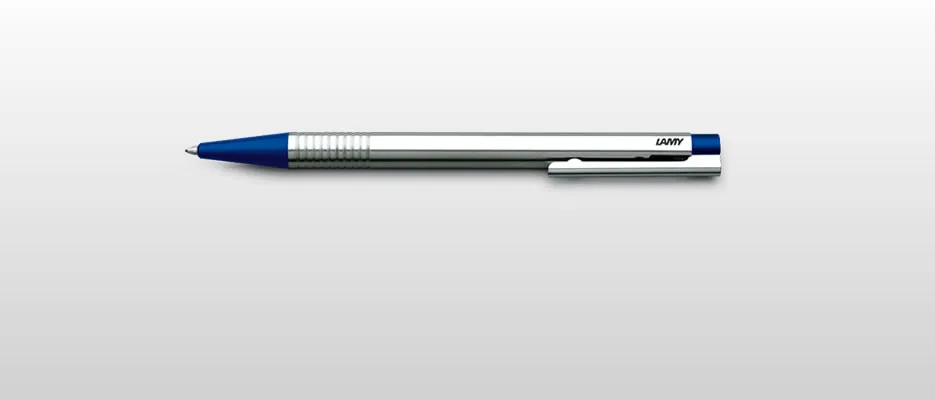 Lamy logo 205, Lamy logo 206 Kugelschreiber und Druckbleistifte bestehen aus rostfreiem Edelstahl, sind rund- bzw. strichmattiert oder mattschwarz lackiert. Der Clip ist robust durch einen abgefederten Stahlclip und einer Druckmechanik mit integrierter Clip-Drücker-Einheit. Kugelschreiber logo 205 und Druckbleistift 105 hat einen rundmattierten Schaft. Kunststoffspitze und Drücker sind farbig matt in schwarz, grün, blau oder rot erhältlich. Ausstattung mit LAMY Großraum-Mine M 16 blau M und Stifte mit schwarzen Kunststoffteilen sind auch mit Mine schwarz M erhältlich.