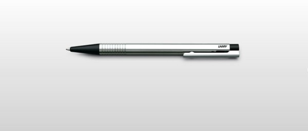 Kugelschreiber logo 206 und Druckbleistift 106 hat ein strichmattiertes (brushed) Gehäuse. Spitze, Clip und Drücker sind verchromt. Ausstattung mit LAMY Großraum-Mine M 16 schwarz M oder blau M. Die Druckbleistifte sind mit einer 0,7 mm Druckbleistift- Mine ausgestattet.